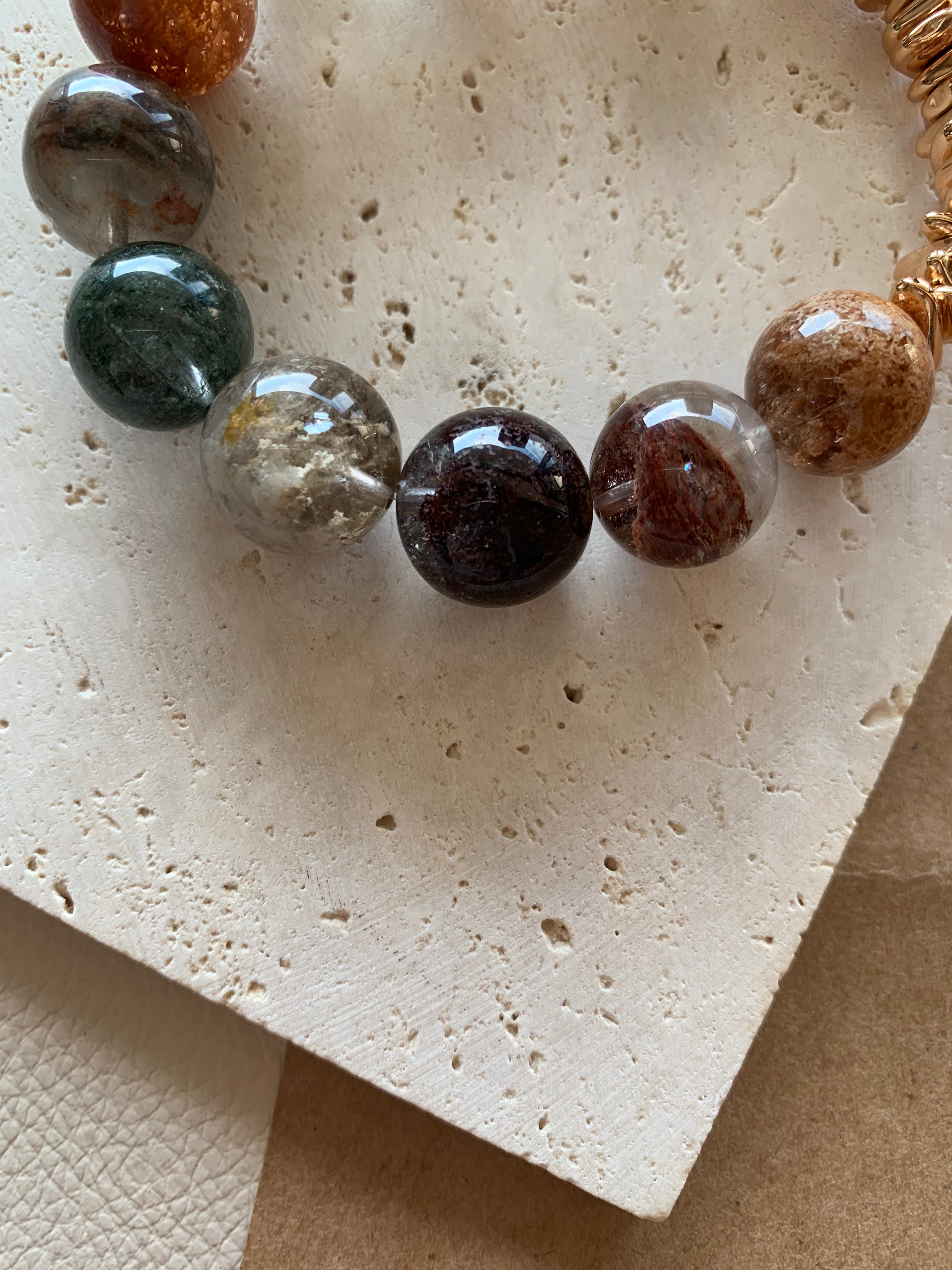 • Naturally layered Phantom Quartz, no two beads alike